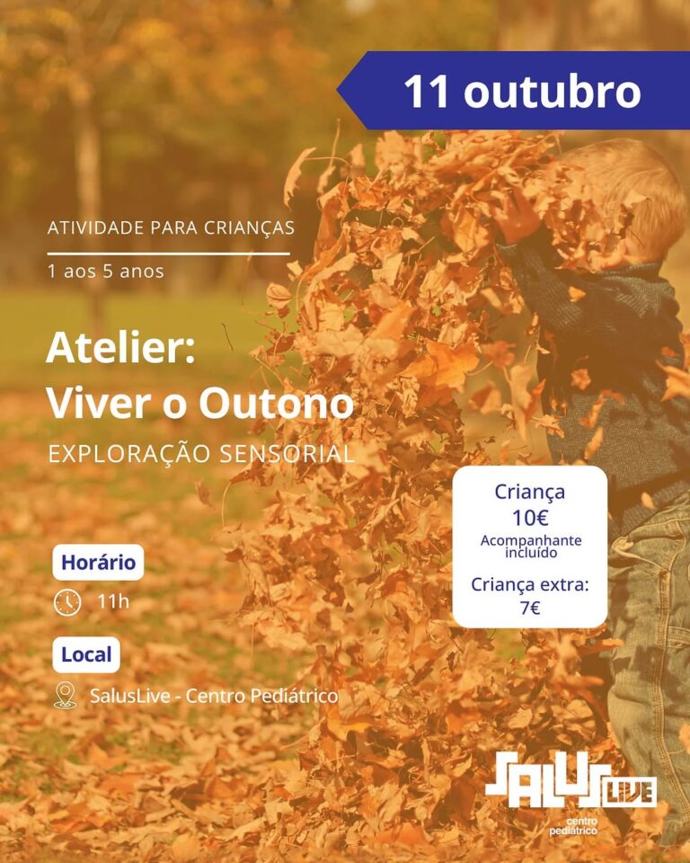 No próximo dia 11 de outubro, a Saluslive, centro clínico de referência nacional na intervenção pediátrica, vai promover um atelier de exploração sensorial, onde as crianças poderão mergulhar nas cores, cheiros, texturas e sons do outono.