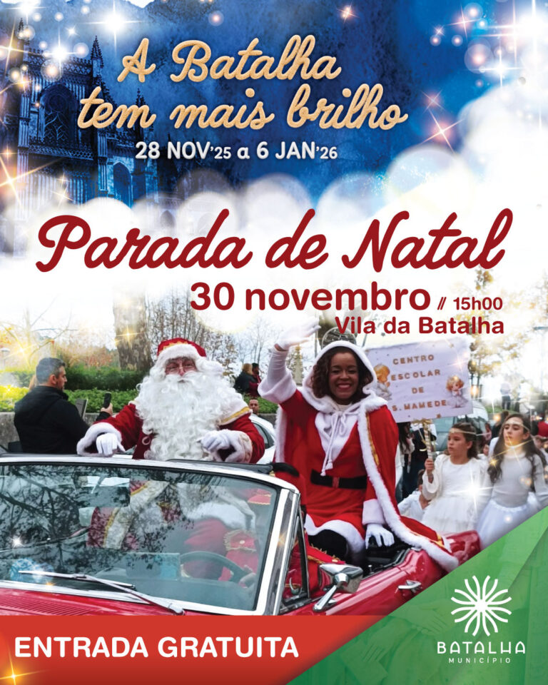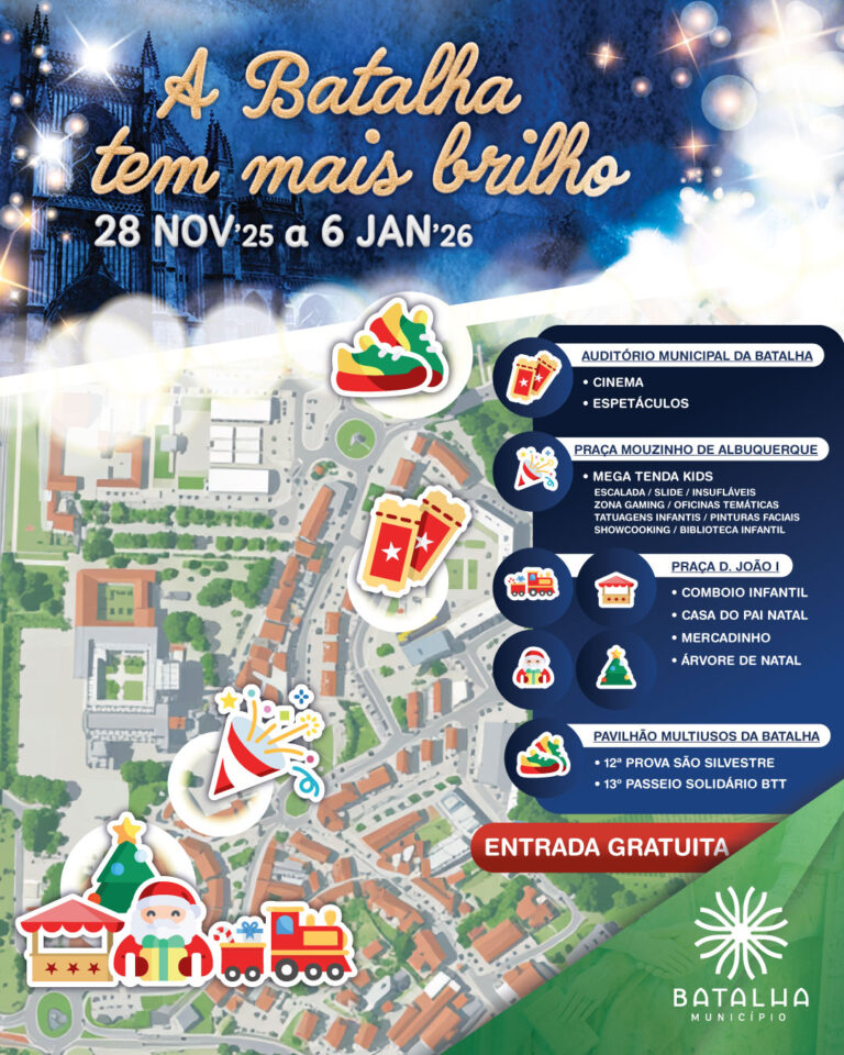 Já estamos quase a abrir as portas à magia do Natal na vila da Batalha! 𝗧𝗼𝗱𝗮𝘀 𝗮𝘀 𝗶𝗻𝗶𝗰𝗶𝗮𝘁𝗶𝘃𝗮𝘀 𝘁𝗲̂𝗺 𝗲𝗻𝘁𝗿𝗮𝗱𝗮 𝗴𝗿𝗮𝘁𝘂𝗶𝘁𝗮.