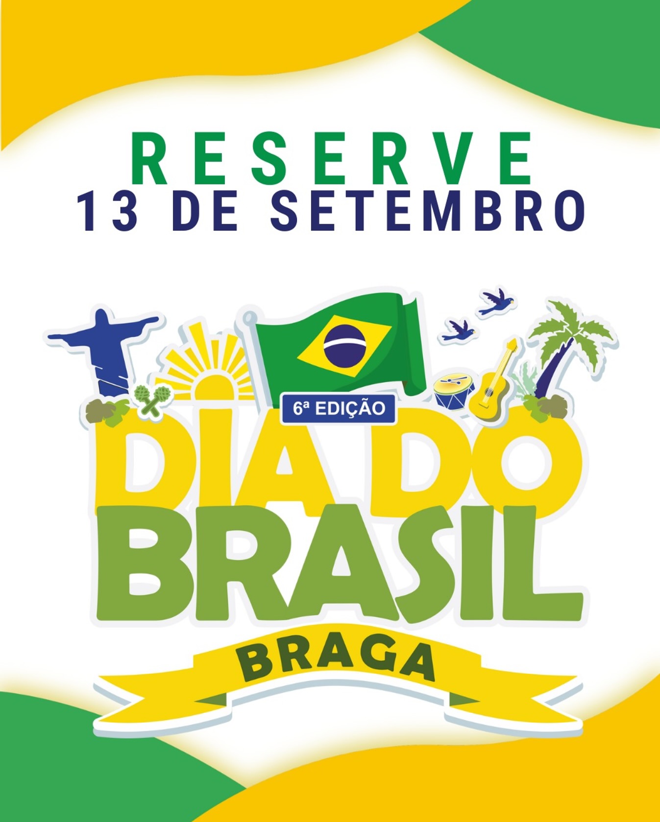 🌍 O Dia do Brasil é celebrado por brasileiros em várias partes do mundo — sempre com festa, música, sorrisos e muito orgulho. Aqui em Braga, não vai ser diferente! Vamos mostrar toda a nossa energia, calor humano e a beleza de ser brasileiro, onde quer que a gente esteja.