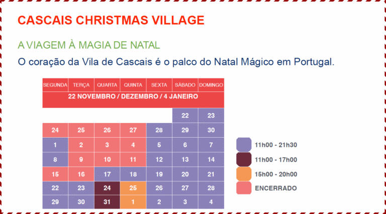Entre a pista de gelo, os mercadinhos, a área de restauração e as muitas surpresas espalhadas pelo recinto, o Cascais Christmas Village promete uma experiência inesquecível, sendo um convite a celebrar a alegria, a tradição e a magia da época.
