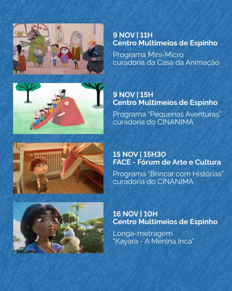 Para além destas sessões de curtas-metragens, no dia 16 de novembro será exibida a longa-metragem “Kayara – A Menina Inca”, uma aventura inspiradora sobre coragem, tradição e o poder dos sonhos.