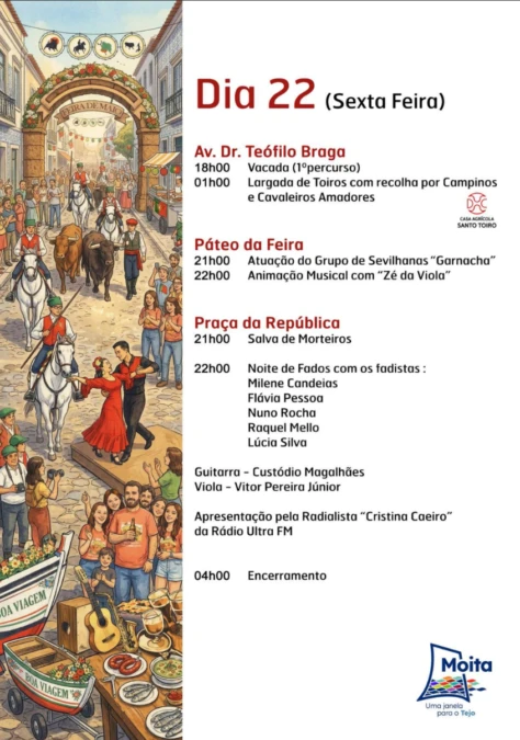 O Conselho Coordenador das Festas da Moita, em parceria com o Município preparou, para os milhares de visitantes, um programa abrangente, a pensar nos vários públicos, sem esquecer as raízes e tradições da vila da Moita.