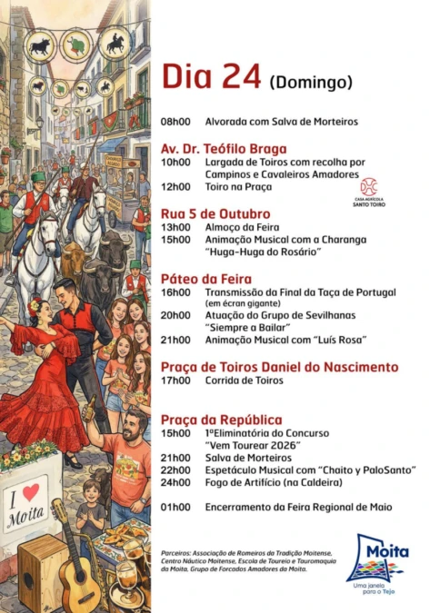No último dia, 24 de maio, acontece o habitual almoço da feira, pelas 13:00 horas, e às 17:00 horas haverá corrida de toiros na Praça de Toiros Daniel do Nascimento.