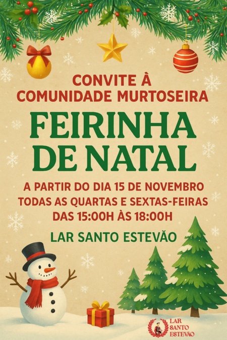 O Lar Santo Estevão vai realizar uma Feirinha de Natal, nas suas instalações, aberta a toda a comunidade.