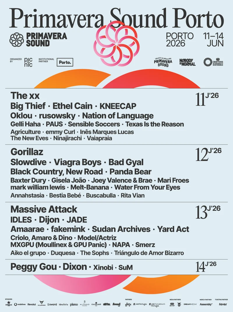 O festival regressa com um alinhamento onde se destacam nomes como The XX, Gorillaz, Massive Attack, Idles e Peggy Gou. Há ainda espaço para alternativos como os japoneses Melt-Banana, a pop etérea de Oklou, a cantautora gótica Ethel Cain, as guitarradas de Big Thief e o rock abrasivo de Model/Actriz.
