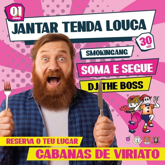 ✨ Nota importante: O bilhete geral não inclui o jantar na Tenda Louca no dia 1 de março. Para participar no jantar, o valor é 30 Cus.
